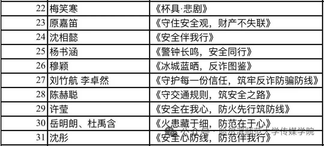 感谢同学们的积极参与,本次大赛的一等奖作品将被推荐参与校级评选。希望传媒学院全体同学能够以此次大赛为契机,把海报里的安全准则融入日常生活,积极传播安全知识,带动身边人一同筑牢安全防线,让平安的光芒洒满校园的每一处角落!