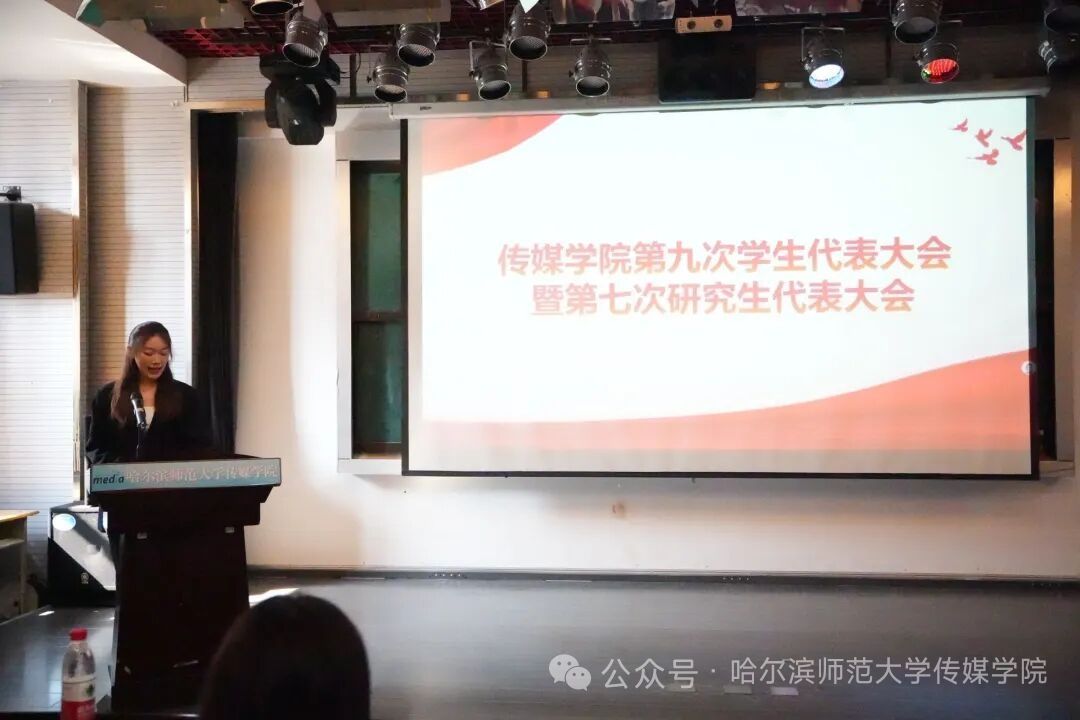 传媒学院学生会主席李雨默、研究生会主席封奥宣读《传媒学院学生会、研究生会2024-2025年度工作总结报告》(下称《报告》)。报告从工作回顾、成果、不足及未来展望四个维度,系统梳理了过去一年学生组织的工作实效,也客观指出了不足并提出务实举措。