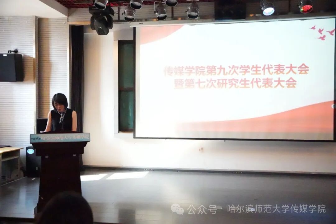传媒学院研究生辅导员于曜铭宣读了《传媒学院第六届研究生会委员会委员候选人名单》、《哈尔滨师范大学第七届研究生会代表大会代表候选人名单》以及《传媒学院第七次研究生代表大会代表资格审查组名单和选举监票小组名单》。