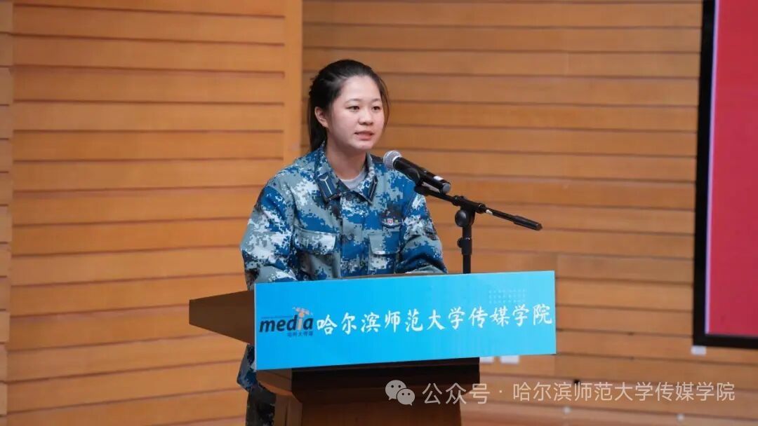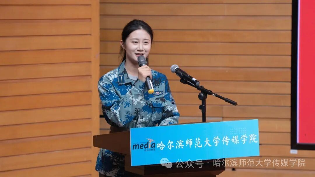 2025级播音与主持艺术专业胡雅茹同学和广播电视编导专业李卓然同学作为新生代表分别在开学典礼上发言。她们表示很高兴加入哈师大传媒学院这个温暖的大家庭,前段时期的军训生活锤炼了她们不怕苦累、勇于攀登的意志,在未来四年的学习和生活中,她们一定会深耕专业领域、积极参与实践创作,为成为一名有温度、有担当的传媒人而努力奋斗。