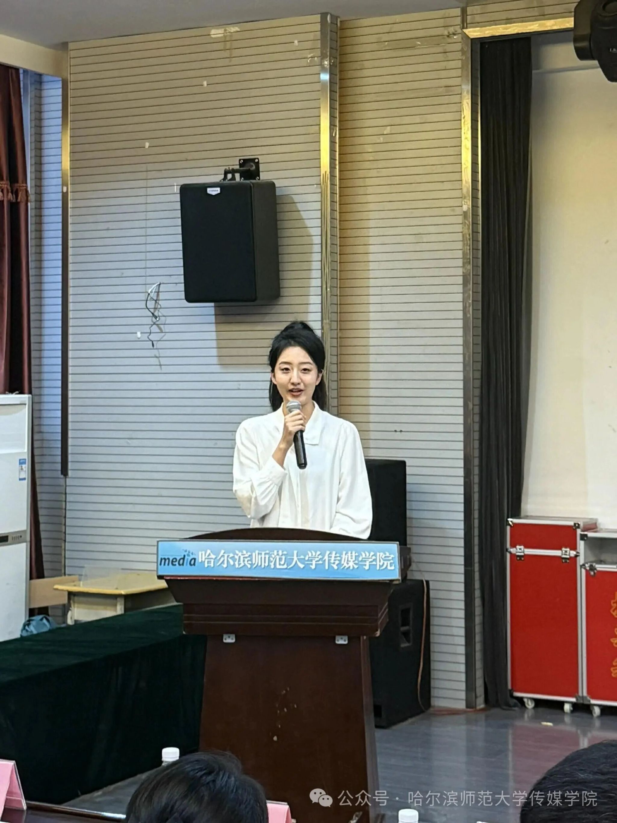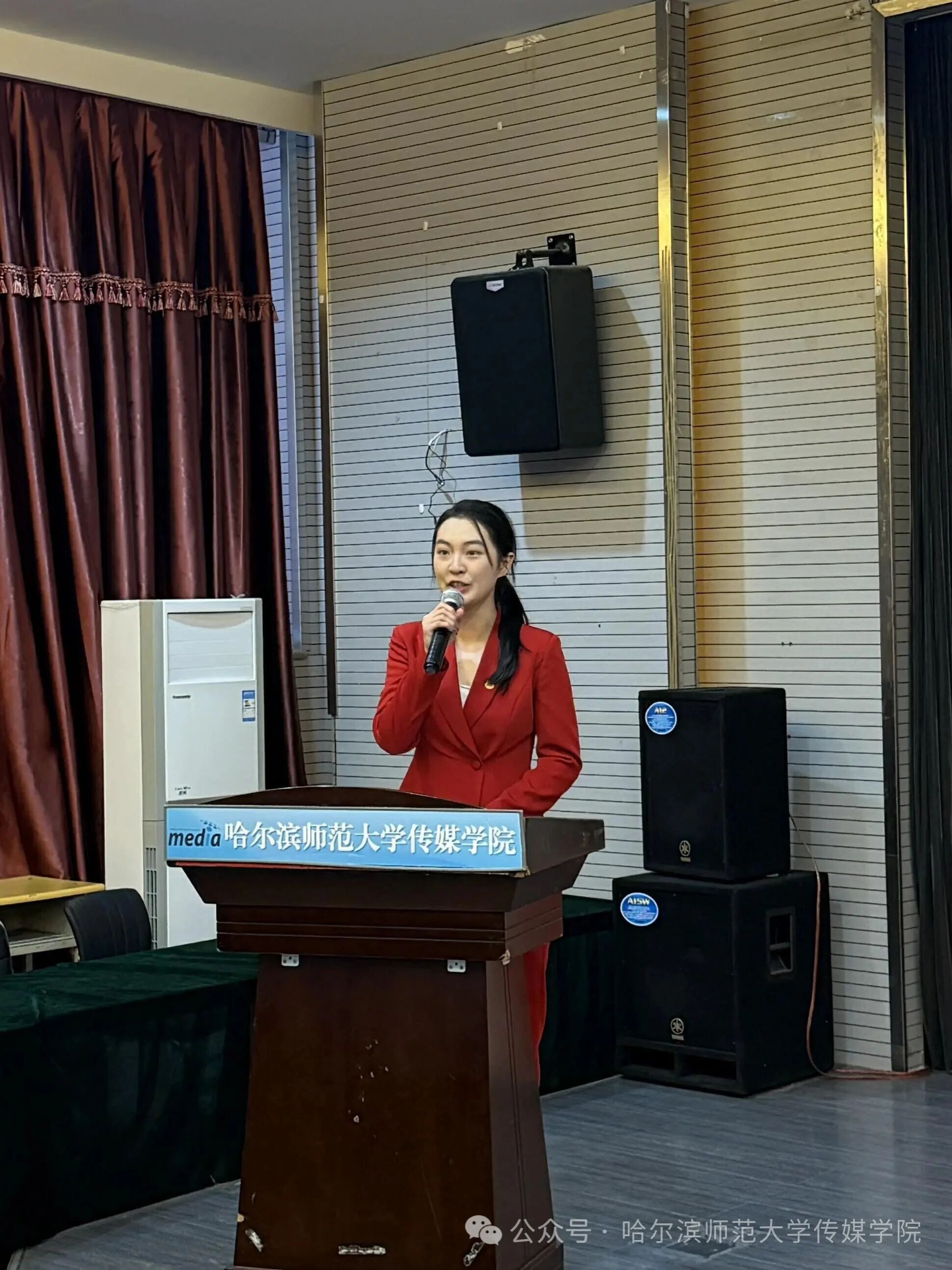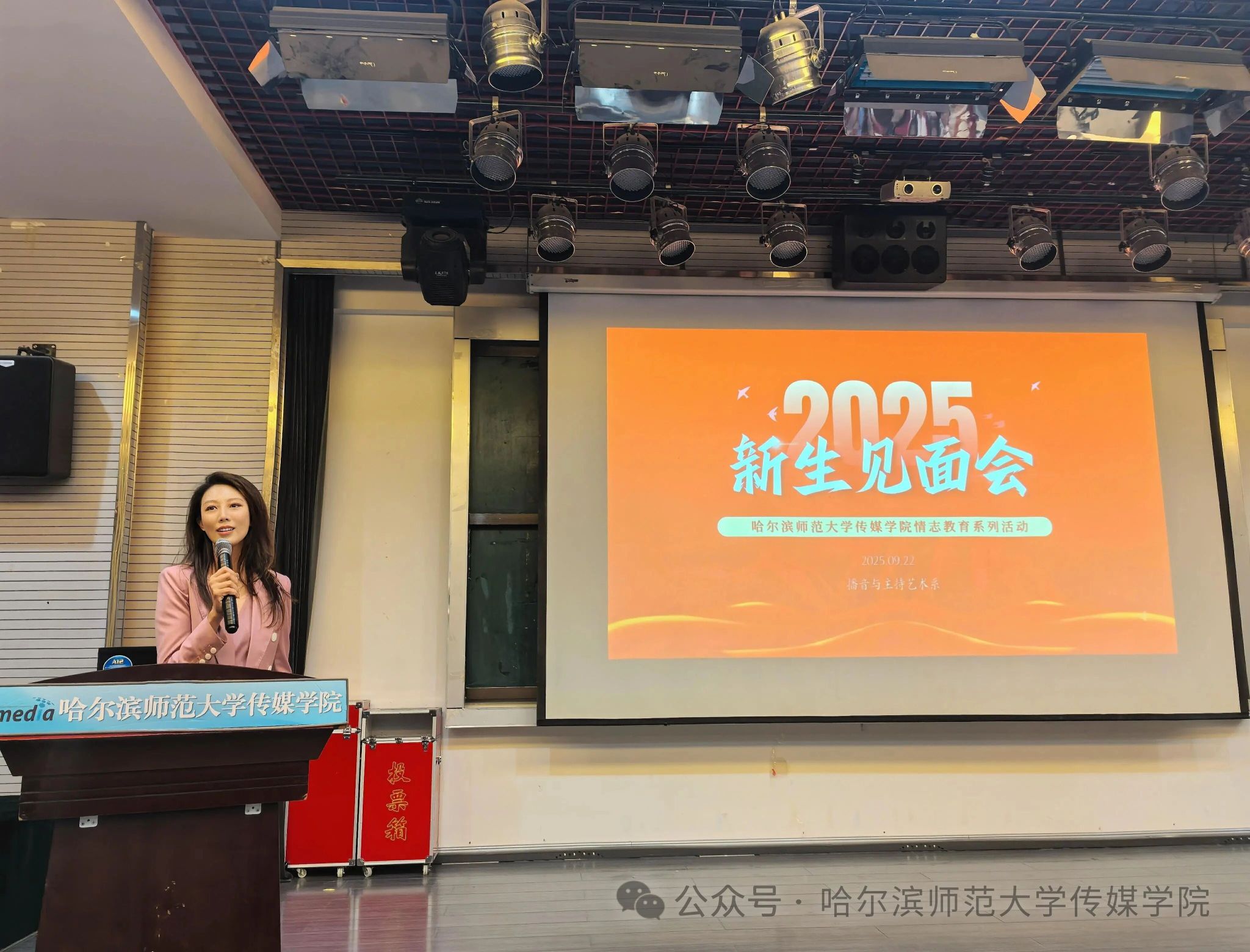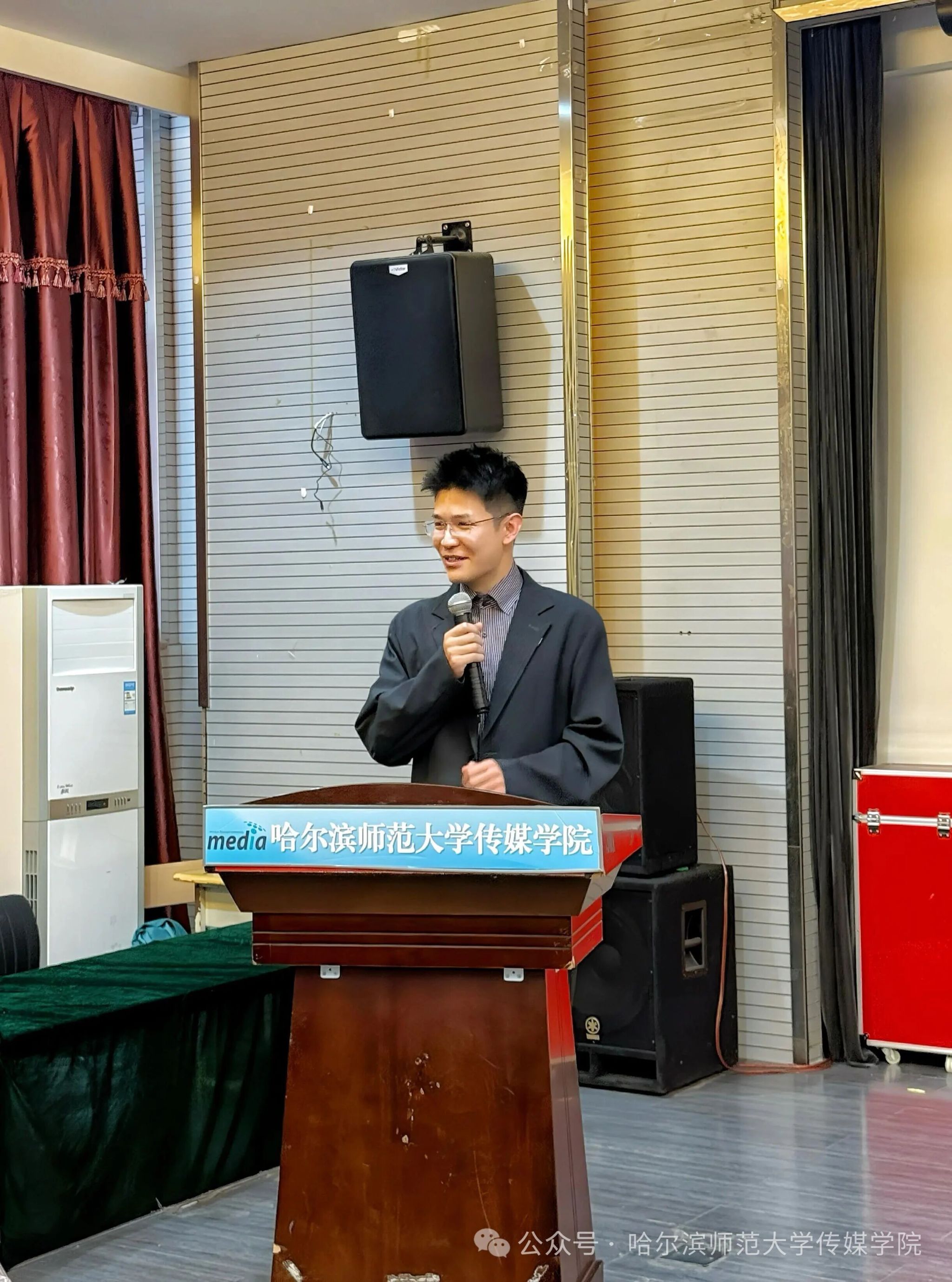 播音与主持艺术系青年教师赵晶磊向同学们表达了热烈的欢迎和深情的期许。他鼓励同学们热爱生活,保持向上姿态,走好脚下的每一步路,用一次次拼搏付出让自己成为闪亮的人。