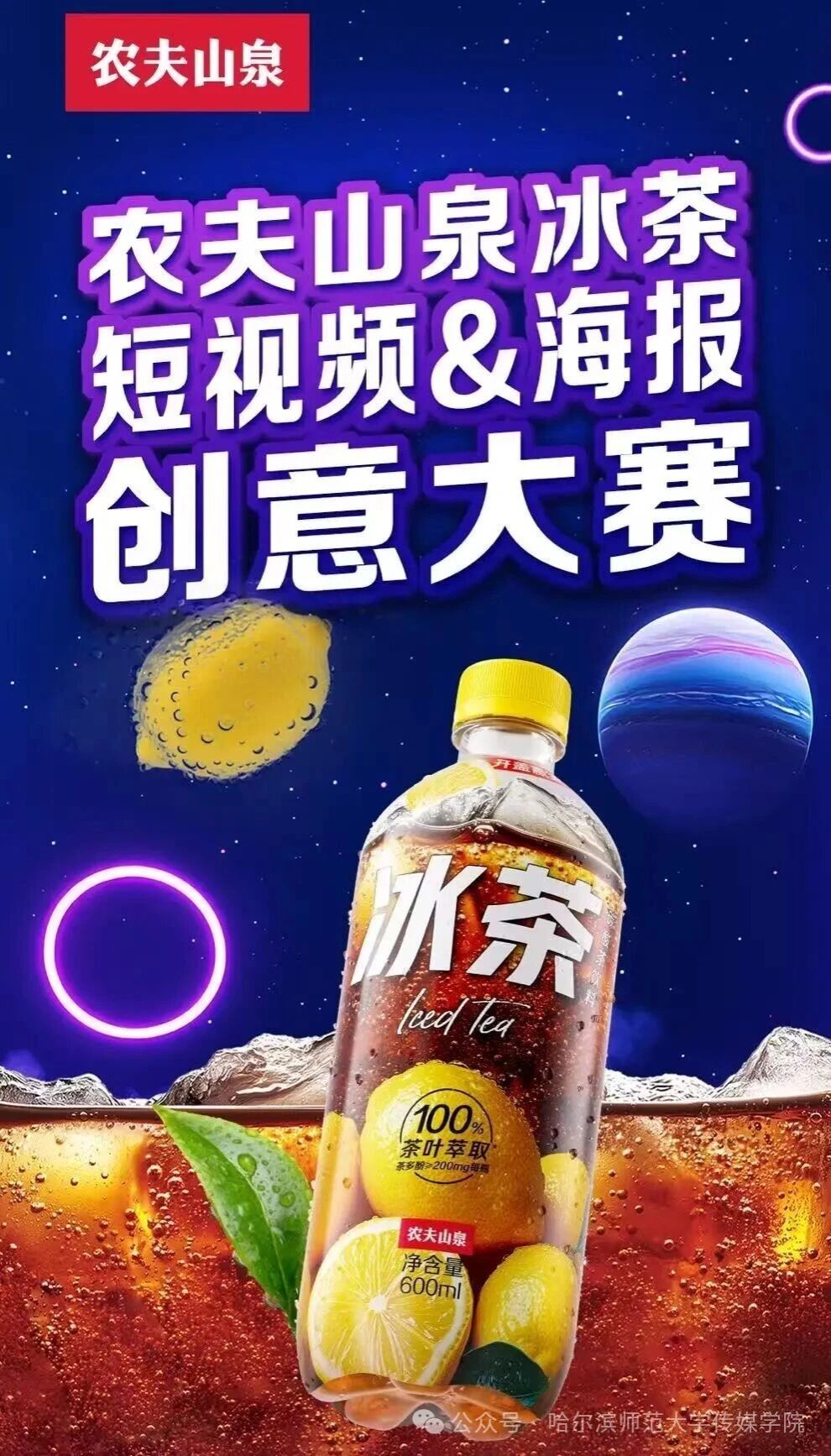 (三)发布要求:参赛者需将作品发布至个人抖音账号,发布时必须添加指定话题#农夫山泉冰茶灵感时刻#和# 哈尔滨师范大学冰茶创意#,并@农夫山泉冰茶官方抖音账号。