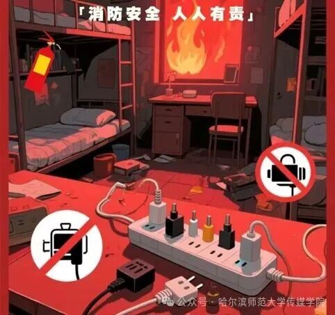 火灾的发生往往源于微小的疏忽,校园内的防火工作更需警钟长鸣。教室、宿舍等场所要严格遵守用电规范,不私拉乱接电线,不使用大功率违规电器,离开时务必关闭电源、熄灭明火。宿舍用电安全红线!人走断电别大意!宿舍用电隐患就藏在日常细节里!插排堆床边、大功率电器共用插座、离开时忘关充电器……这些行为超危险!电线老化、超负荷用电很容易引发短路火灾,别因一时疏忽让危险找上门!