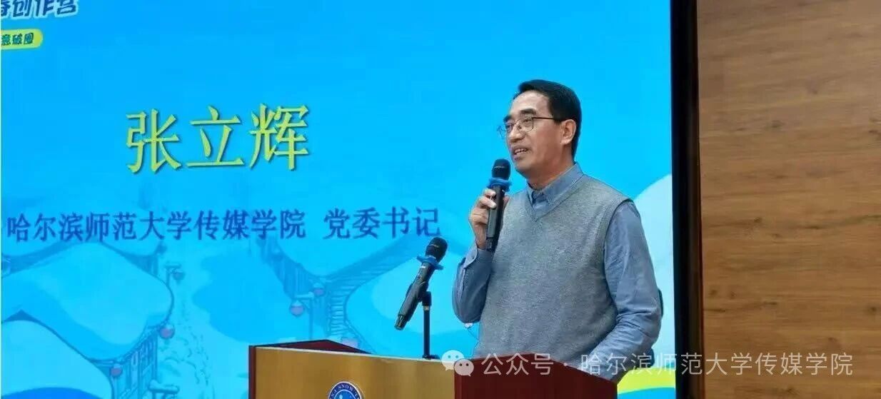 传媒学院党委书记张立辉在致辞中表示:“青年是文旅传播的核心力量,他们的视角新鲜、表达多元,能让雪乡的冰雪之美突破圈层。这次校企合作既给学生提供了实战平台,又让景区对接了优质创意资源,这种‘资源+创意’的模式值得长期深耕。”张立辉书记赞誉雪乡景色为童话般的冰雪盛景,并详细介绍了传媒学院在艺术创作、人才培养、学科建设等方面的核心优势。