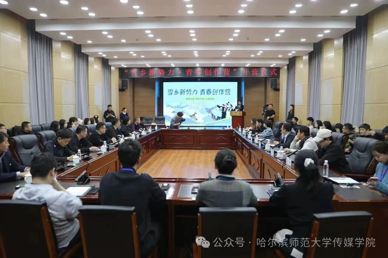 12月6日下午,哈尔滨师范大学传媒学院、龙江森工集团大海林林业局有限公司、哈尔滨鑫成文化传媒有限公司共同举办的“雪乡新势力·青春创作营”活动在雪乡景区雪韵阁多功能会议室隆重开营。