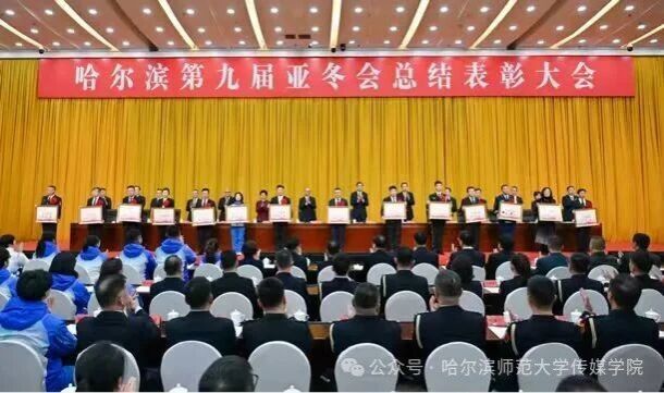 1月7日,哈尔滨第九届亚冬会总结表彰大会召开,省委书记许勤、国家体育总局局长高志丹讲话,省长梁惠玲主持。大会深入学习贯彻习近平总书记关于体育强国的重要论述和关于筹办举办第九届亚冬会重要指示批示精神,总结亚冬会成功经验,表彰先进集体和先进个人,激励全省上下牢记嘱托、再创佳绩,奋力谱写中国式现代化龙江新篇章。经亚冬会执委会相关部办及省直部门严格遴选与推荐,我院教师赵晶磊荣获由中共黑龙江省委办公厅、黑龙江省人民政府办公厅颁发的“哈尔滨第九届亚冬会黑龙江省先进个人”称号。这份荣誉,既是对赵晶磊老师个人专业能力和辛勤付出的高度认可,也是对传媒学院始终践行"服务社会、记录时代"理念的有力印证。
