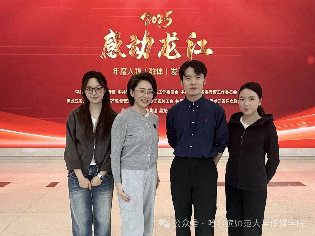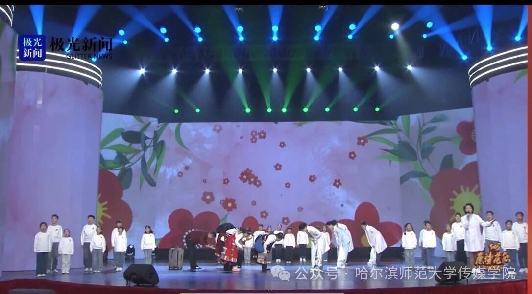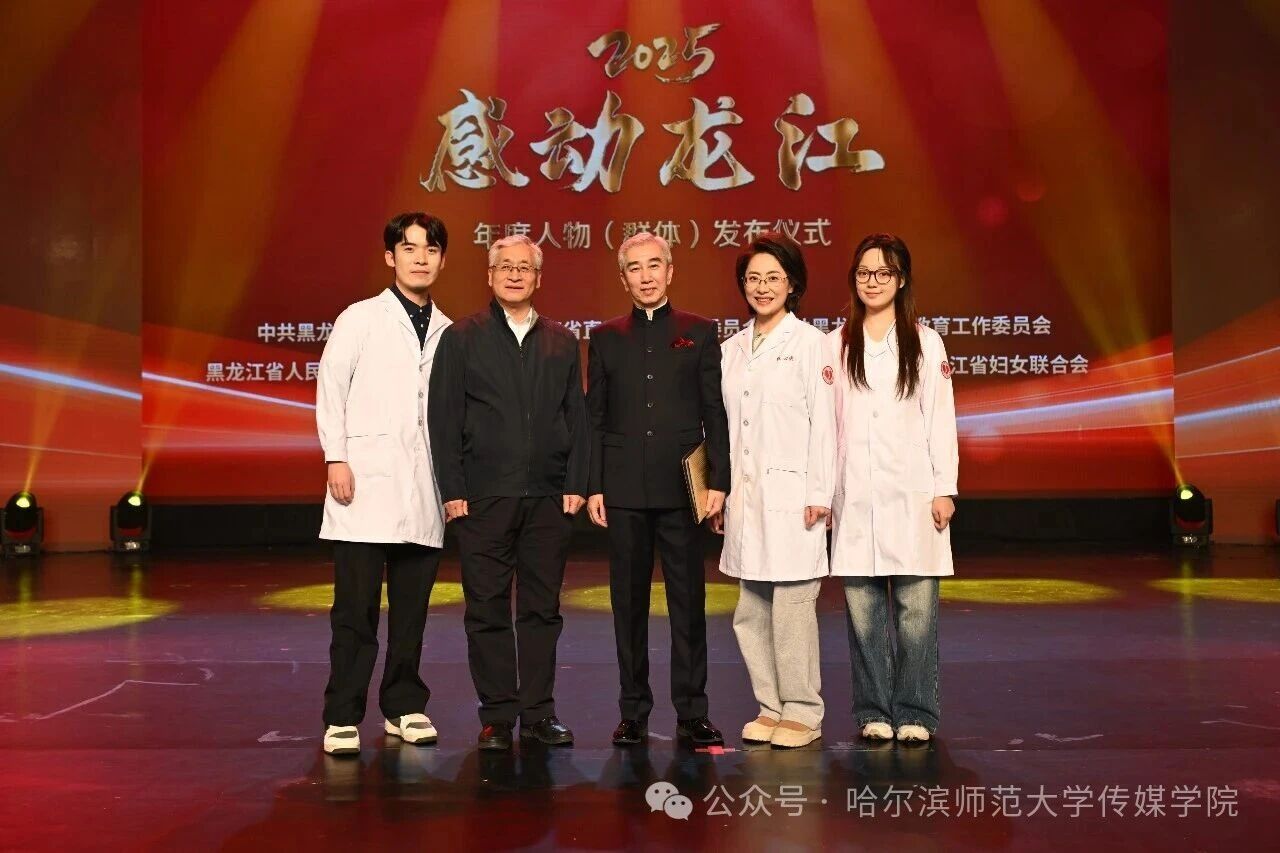 近日,由黑龙江省委宣传部、省直机关工委、省教育工委、省国资委、省总工会、团省委、省妇联、黑龙江日报、黑龙江广播电视台等9个部门和单位联合主办的2025“感动龙江”年度人物(群体)发布仪式圆满落幕。哈尔滨师范大学传媒学院播音主持艺术系师生团队以及表演系学生受邀参演,用专业力量传递龙江温度,以舞台实践彰显学科实力。