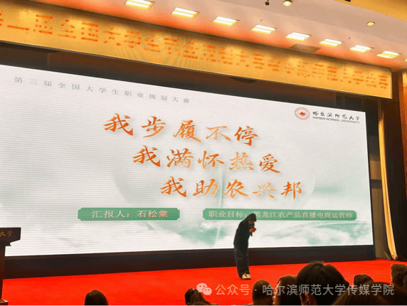 石松棠,女,共青团员,现就读于哈尔滨师范大学传媒学院广播电视编导专业,辅修汉语言文学专业。自入学至今蝉联专业第一,任23级广播电视编导2班学习委员,获国家奖学金、黑龙江省三好学生、哈尔滨师范大学优秀志愿者称号,多次获评校一等奖学金。竞赛方面,斩获2025年中国大学生广告艺术节学院奖国家金奖、2025年全国大学生职业规划大赛黑龙江赛区铜奖、2025年文明龙江公益广告征集优秀奖、2024年中国大学生广告节学院奖国家铜奖等14项国家级奖项;科研方面,主持黑龙江省大学生创新训练计划省级项目1项;实践方面,曾在黑龙江省广播电视台、达利食品集团、上海a2牛奶公司传媒相关岗位实习。