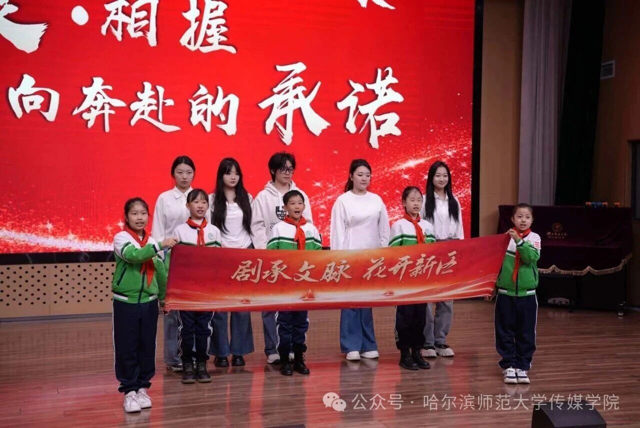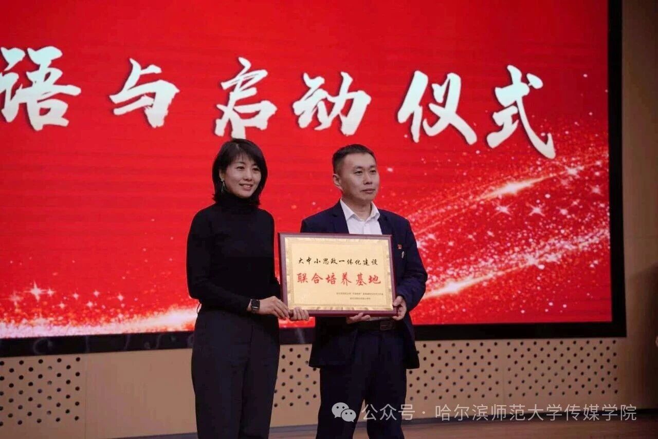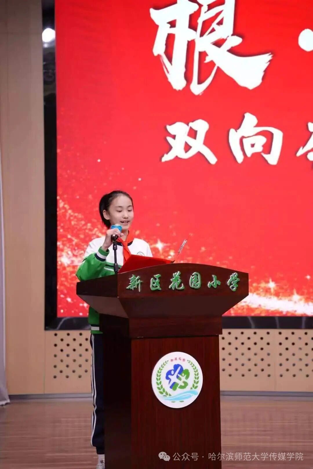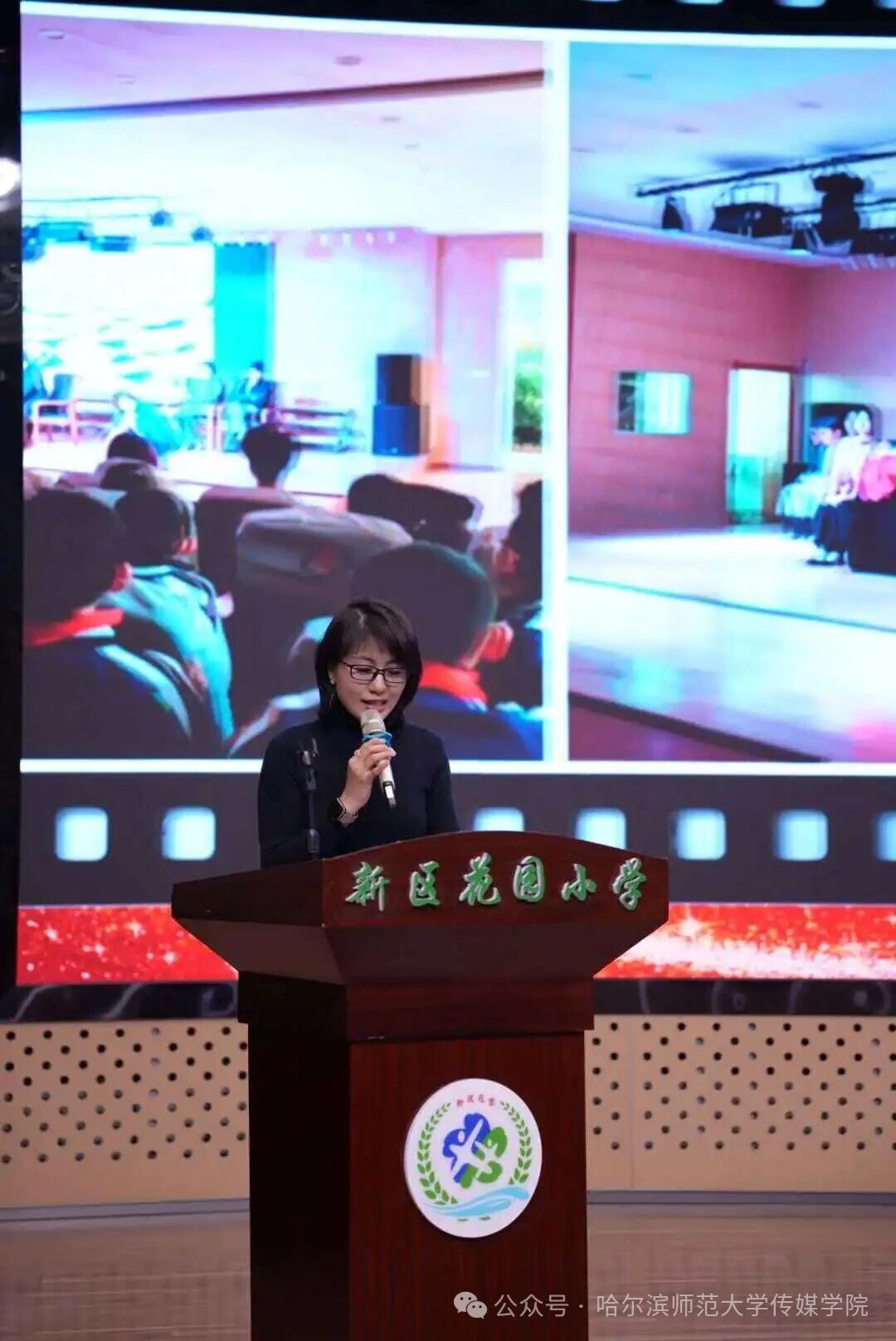 活动中,哈师大传媒学院表演系和“E海扬帆”美育辅导员名师工作室与新区花园小学校举行授牌仪式,分别授予“哈尔滨师范大学表演系实习实践基地”和“大中小思政一体化建设联合培养基地”牌匾,标志着双方在协同育人、资源共享方面迈出实质性步伐。这一基地的建立,将为哈师大传媒学子提供长期稳定的实践平台,让专业训练与教育实践深度融合。