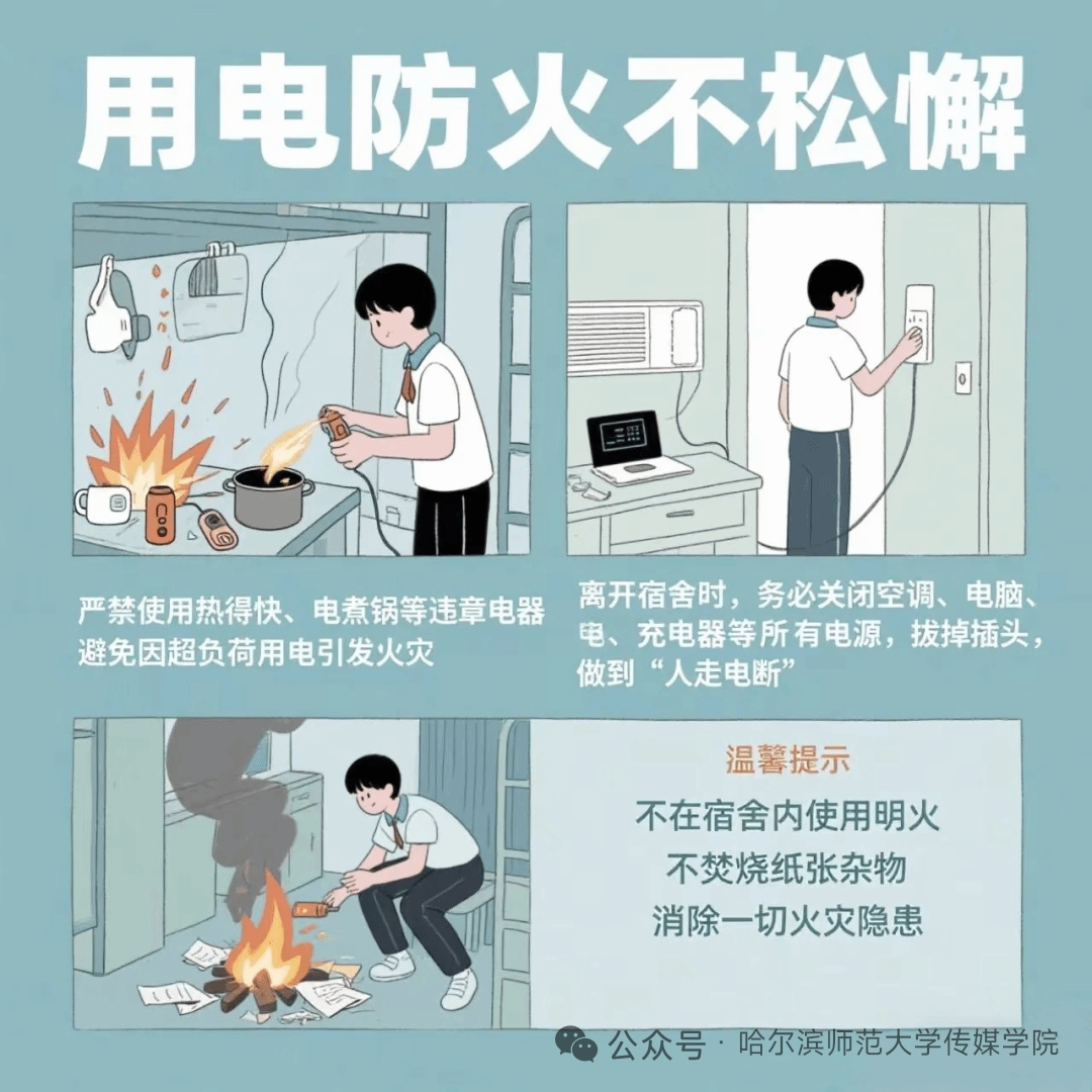 宿舍是集体生活的“小家”,用电安全容不得半点马虎。严禁使用热得快、电煮锅、电炉、大功率暖手宝等违规电器,这些电器会让电路过载,引发短路甚至火灾;选择充电宝和插座时,认准国家认证带有国标的正规插排,使用国家认证带有明确3c标志的充电宝;离开宿舍前,务必关闭台灯、电脑、充电器等所有电器电源,拔掉插头,拔掉正在充电的充电宝,做到“人走断电”。