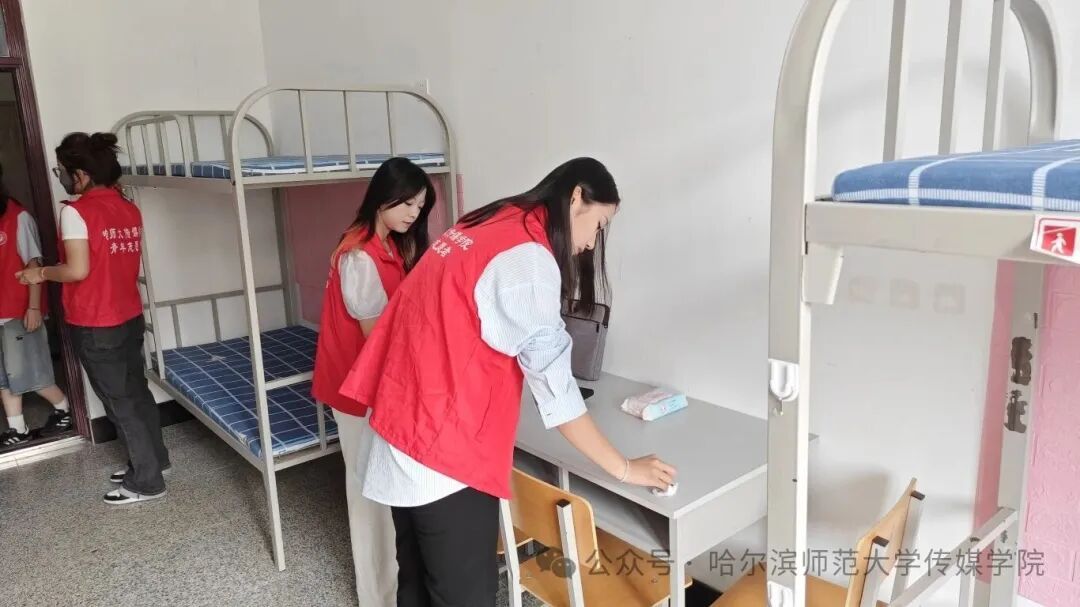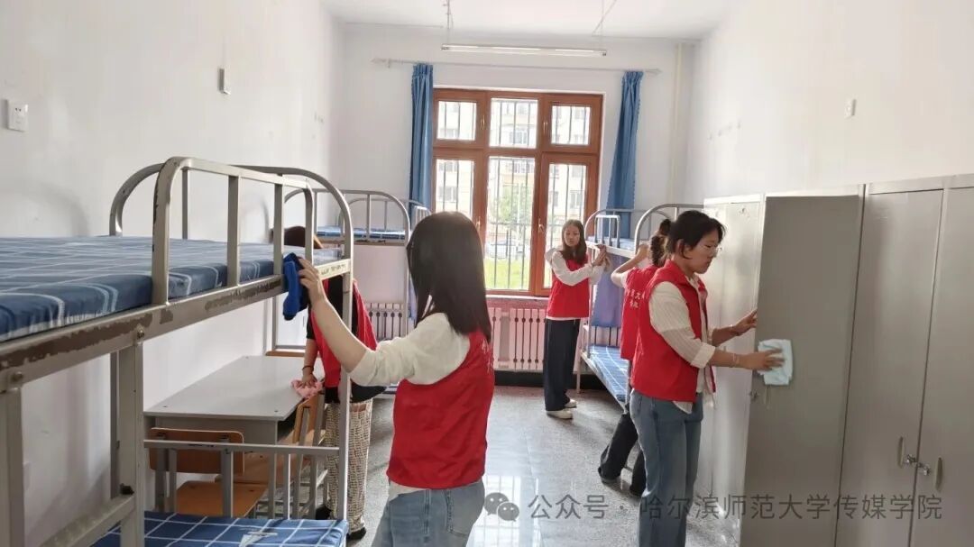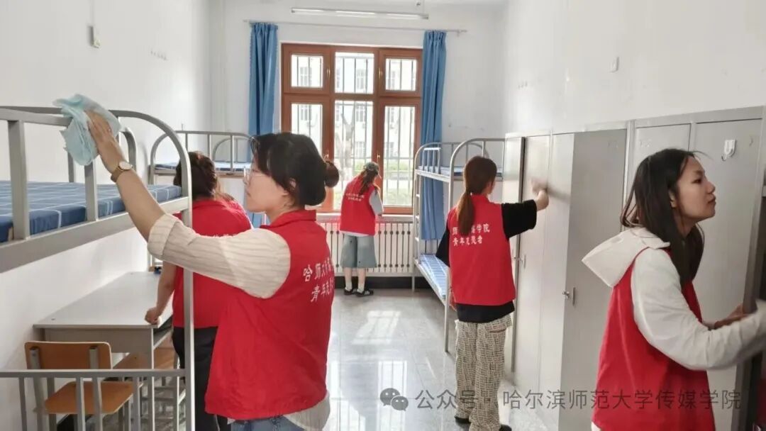 作为哈师大志愿服务的中坚力量,传媒学院青年志愿者协会始终以“奉献、友爱、互助、进步”为宗旨,用实际行动诠释责任与担当。此次清洁活动,不仅是为新生营造舒适的居住环境,更让“志愿精神”在校园里传递——学长学姐们用双手搭建起温暖的桥梁,让新生刚踏入校园就感受到来自“大家庭”的关怀。